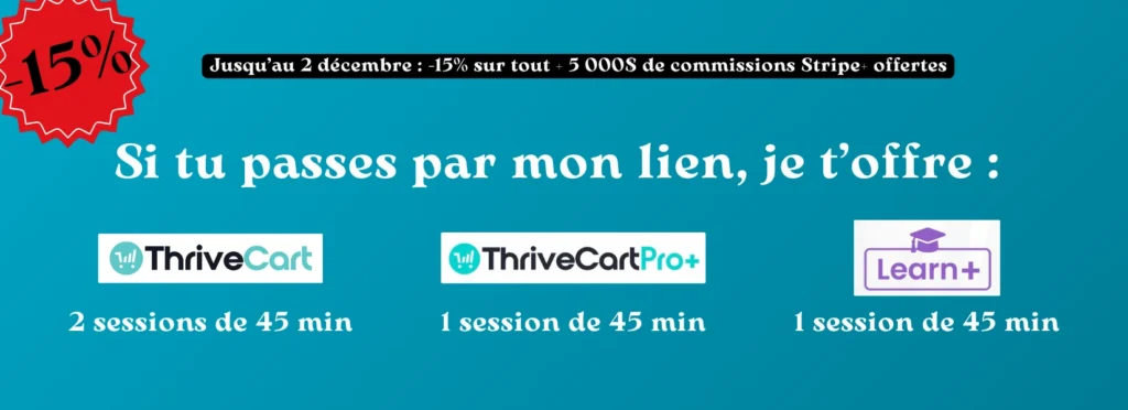 En ce moment : -15% sur ThriveCart, ThriveCart pro+, Learn+ Retrouve les liens ici